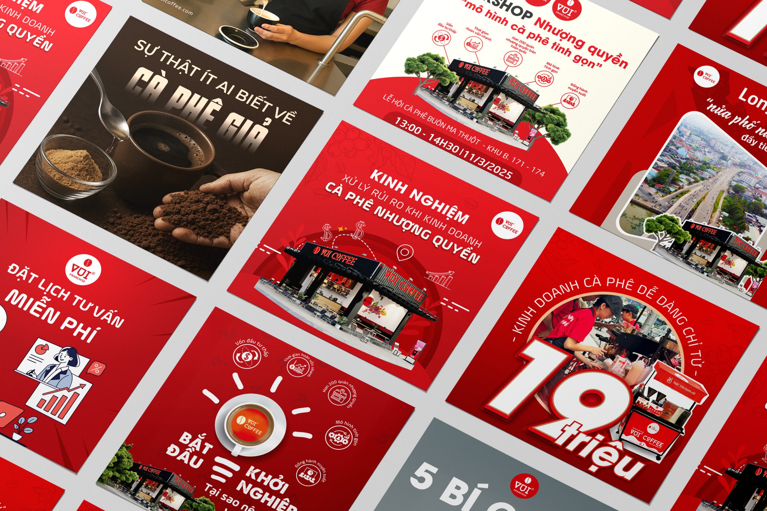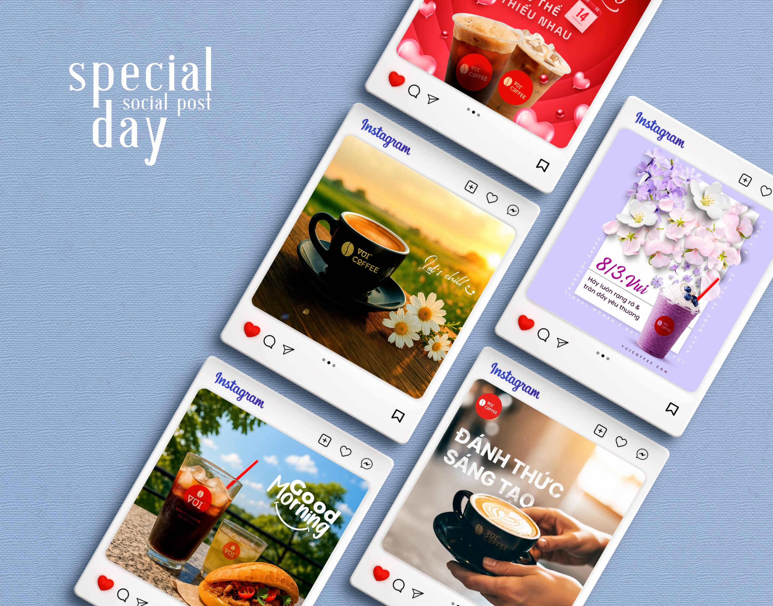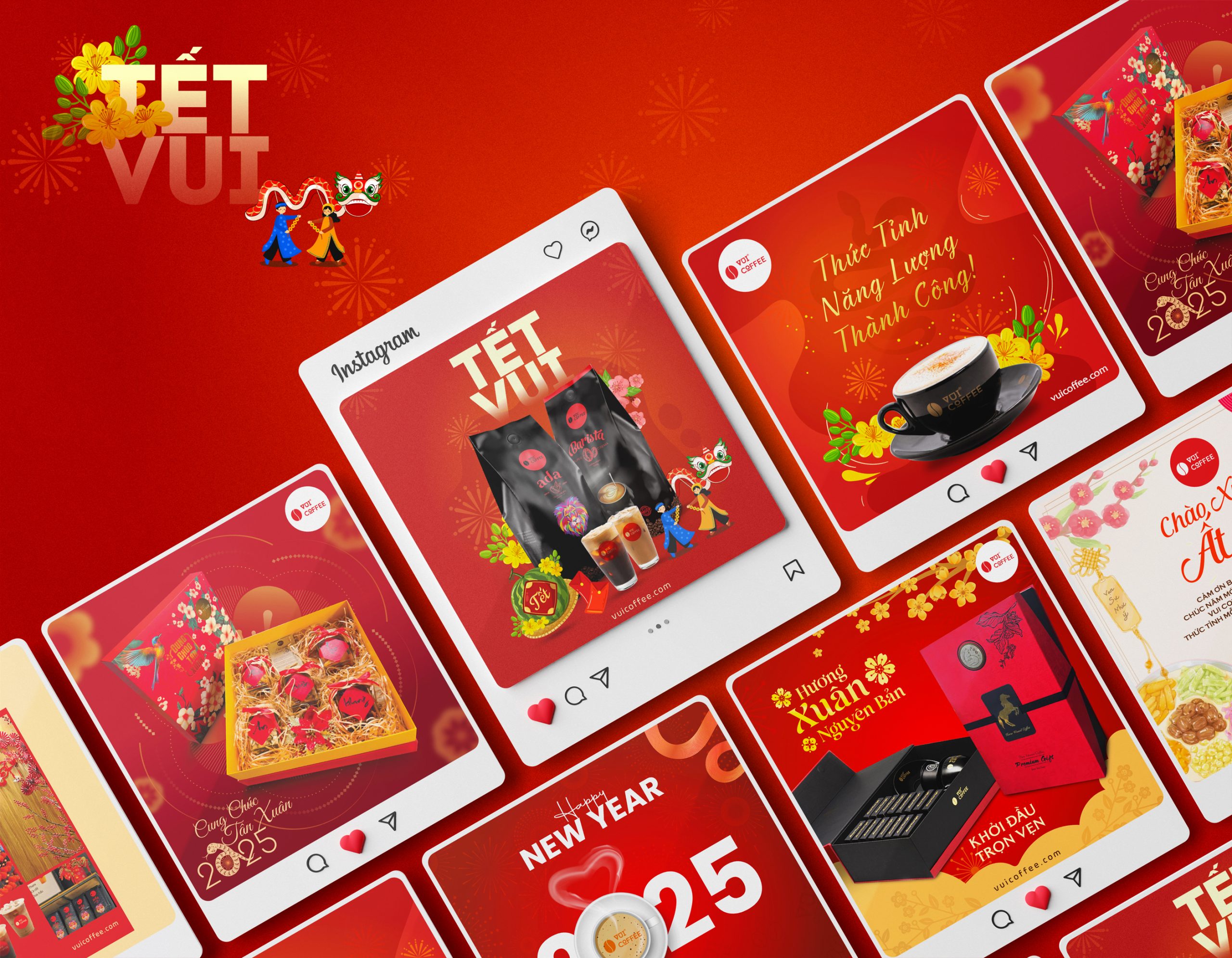 Social banner design for Vui Coffee embodies a vibrant, friendly, and energetic brand spirit. With a modern visual style, bright colors, and engaging layouts, each design for Instagram and Facebook helps build a lively, memorable brand presence that inspires—true to the name “Vui.”.