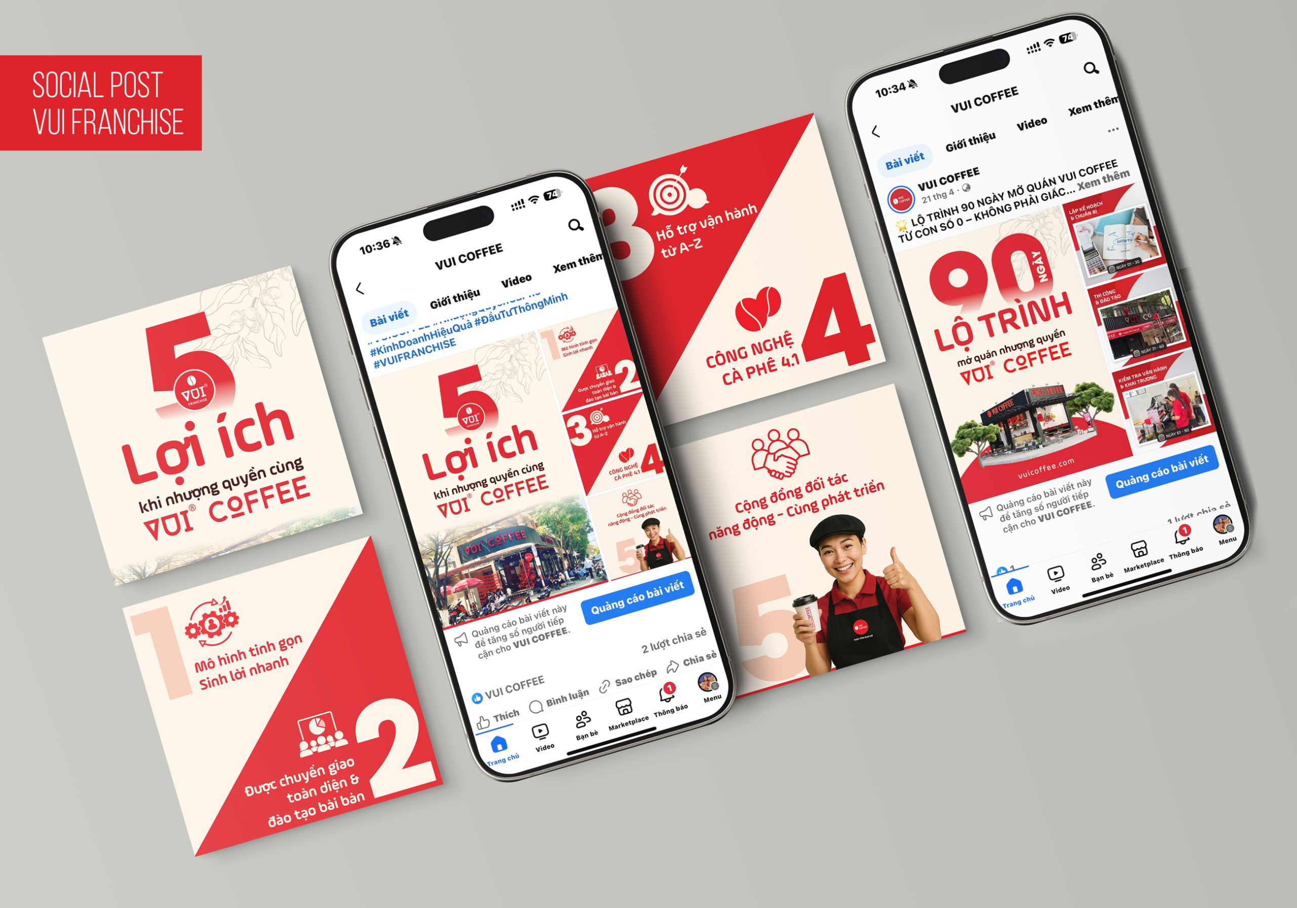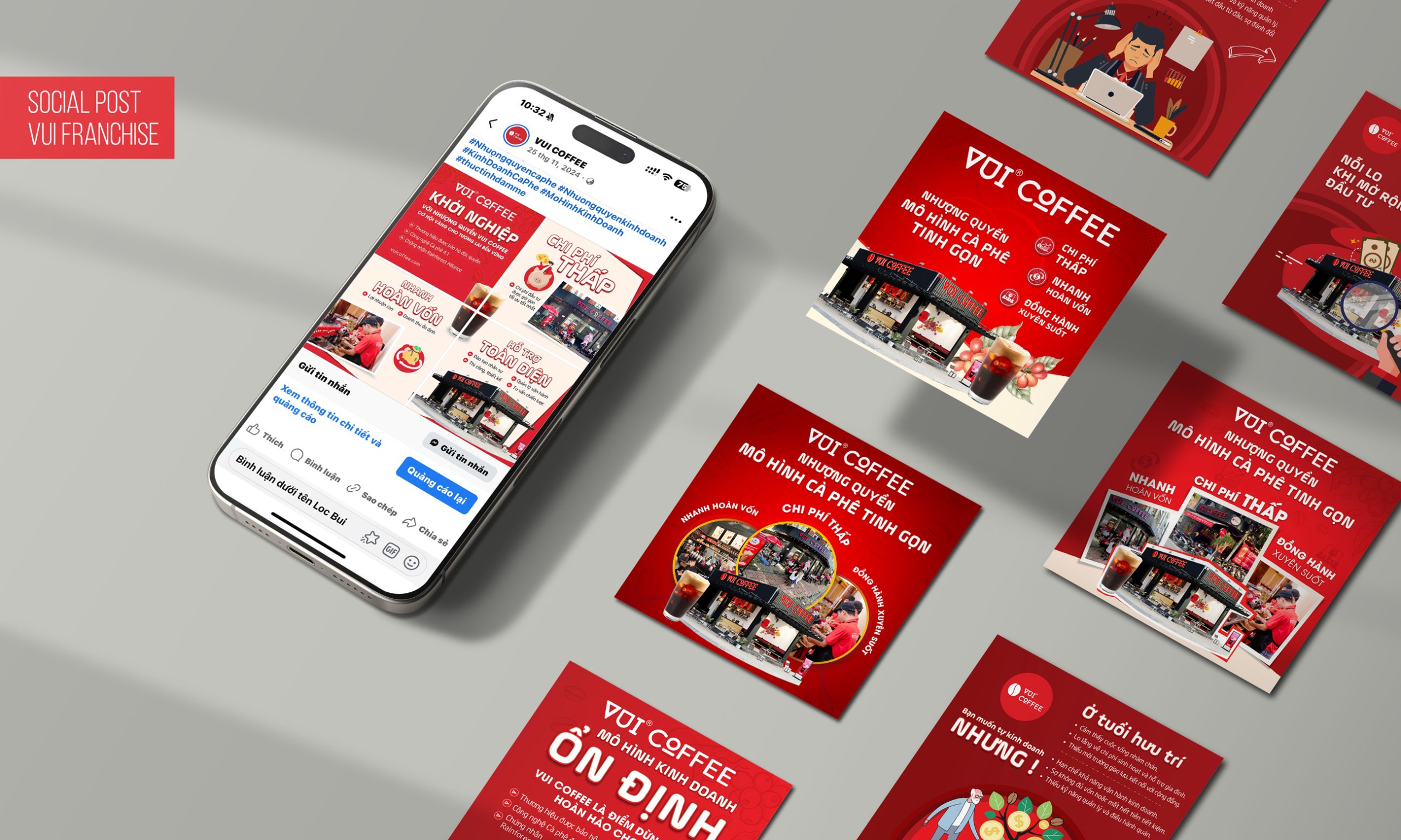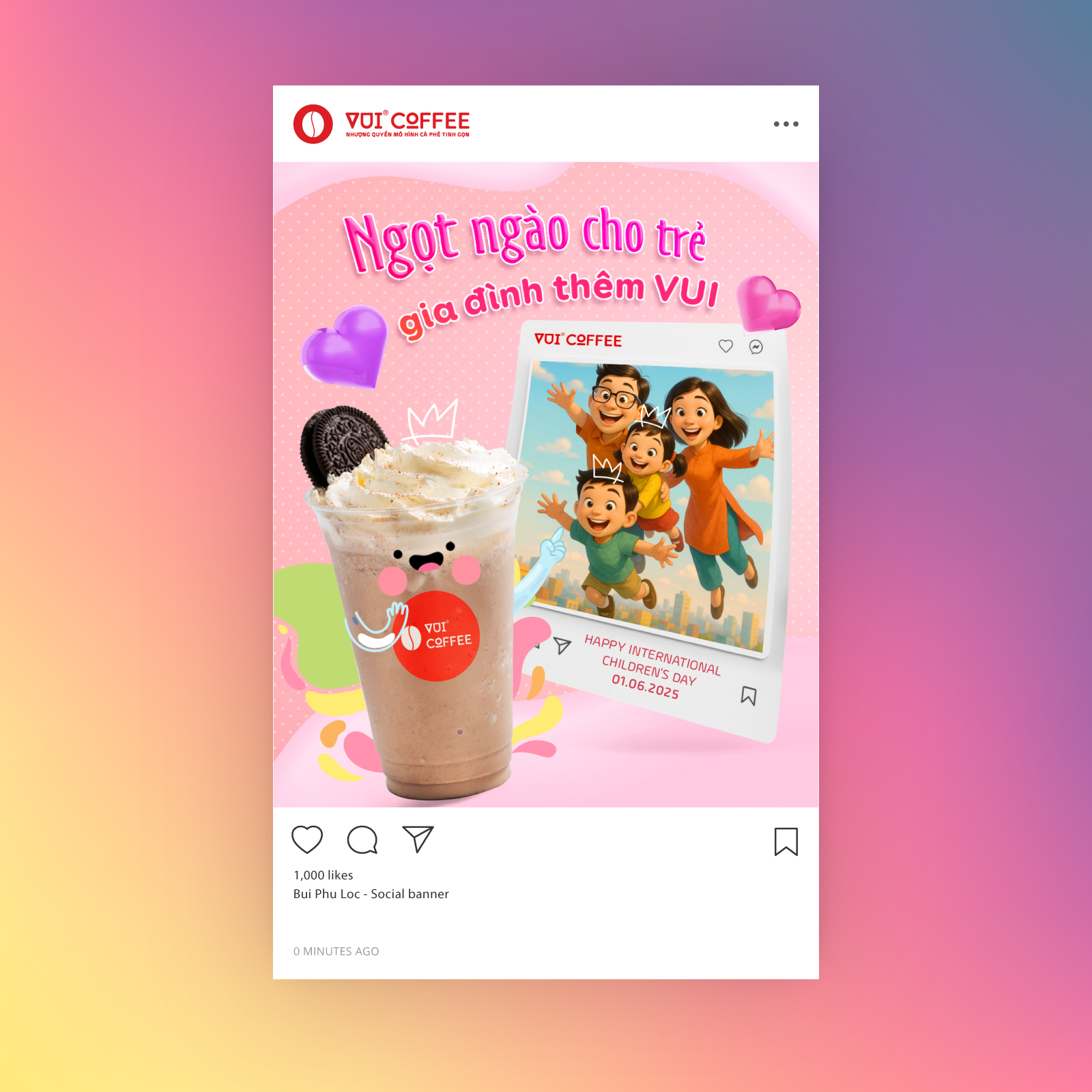 Social banner design for Vui Coffee embodies a vibrant, friendly, and energetic brand spirit. With a modern visual style, bright colors, and engaging layouts, each design for Instagram and Facebook helps build a lively, memorable brand presence that inspires—true to the name “Vui.”.